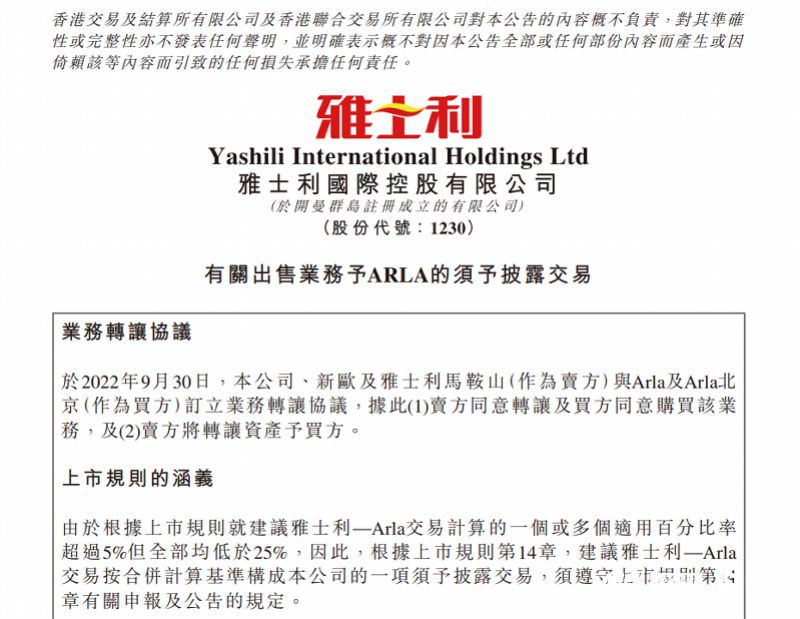 公开资料显示,2015年,蒙牛控股的奶粉上市公司雅士利和Arla合作。雅士利2021年财报还提到Arla是雅士利重要的战略合作品牌,以高端有机作为主打。不过,2022年9月30日,雅士利发布公告称,其与Arla协议终止战略合作。这也意味着,雅士利和Arla七年的合作正式结束。该公告还显示,董事认为,建议雅士利—Arla交易将有助公司精简业务,集中资源加速拓展新产品,巩固在核心品牌的市场地位。