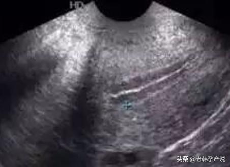 如上图所示。有的病人子宫内膜回声不均匀,在宫腔线和上下两条线之间有一些点状或片状高回声,有的病人在宫腔线处附近有明显一团高回声,就是子宫内膜息肉
